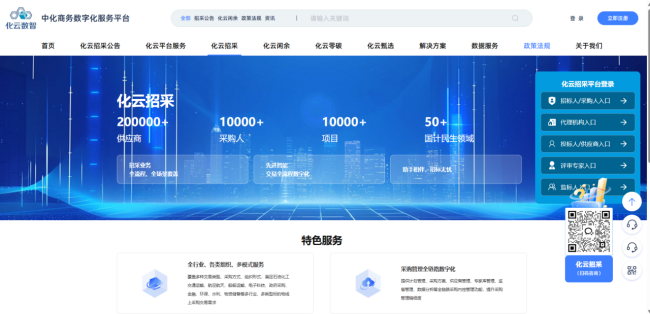 作为平台的核心产品,“化云招采”SAAS系统以“免部署、灵活入驻、数据隔离、安全可靠”等优势,有效解决了企业自建平台成本高、周期长等痛点。系统支持全流程电子化招投标、多角色在线协同及虚拟开评标大厅等功能,其内置的业务驾驶舱与智能监督引擎,可实现多维数据分析、风险预警与精准围串标识别。