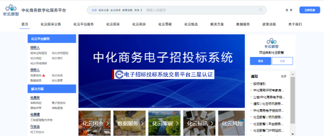 “化云数智”平台是中化商务数字化服务的核心载体,深度融合招采服务、产业咨询、工程管理、供应链管理等多元业务,致力于为客户提供实时、按需、全在线的数字化交互与交付体验。平台以“咨询+数字化+运营+服务”为业务布局,构建起立体化、网格化的服务矩阵,助力企业实现采购与供应链管理的价值共创、共享、共赢。